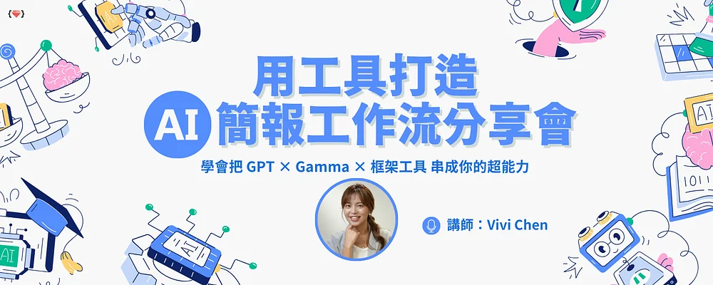好,那就來一堂真的對工作有幫助的 AI 分享會,用最適合一般人的方法,把 AI 帶進你的日常,把「簡報」做成工作流!